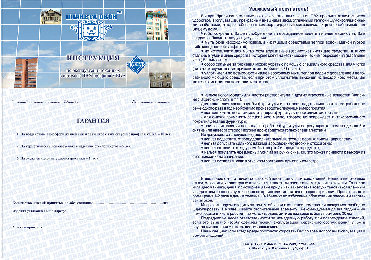 - Гарантия на эксплуатационные характеристики (монтаж, фурнитура, отделка откосов и т.д.) - 2 года