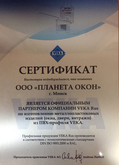 Не зря мы являемся официальным партнером немецкой компании VEKA, кроме того вся продукция и работы прошли жесткую государственную сертификацию. - точных сроках и гарантии